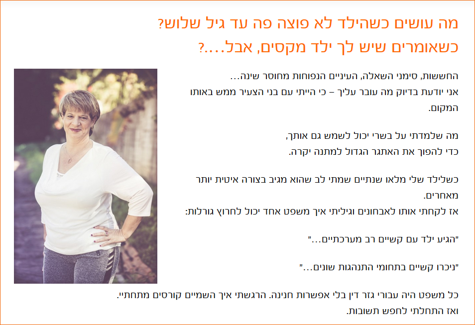אחרי שהילד שלה אובחן בטעות כסובל מ P.D.D – לקות התפתחותית נרחבת, החליטה מלי לחפש תשובות וחזרה עם תובנות פורצות דרך. בסיפורה האישי ובשיטה הייחודית שפיתחה, משתמשת היום מלי כדי לסייע לילדים ולהוריהם להפוך את הקושי למתנה יקרת ערך.